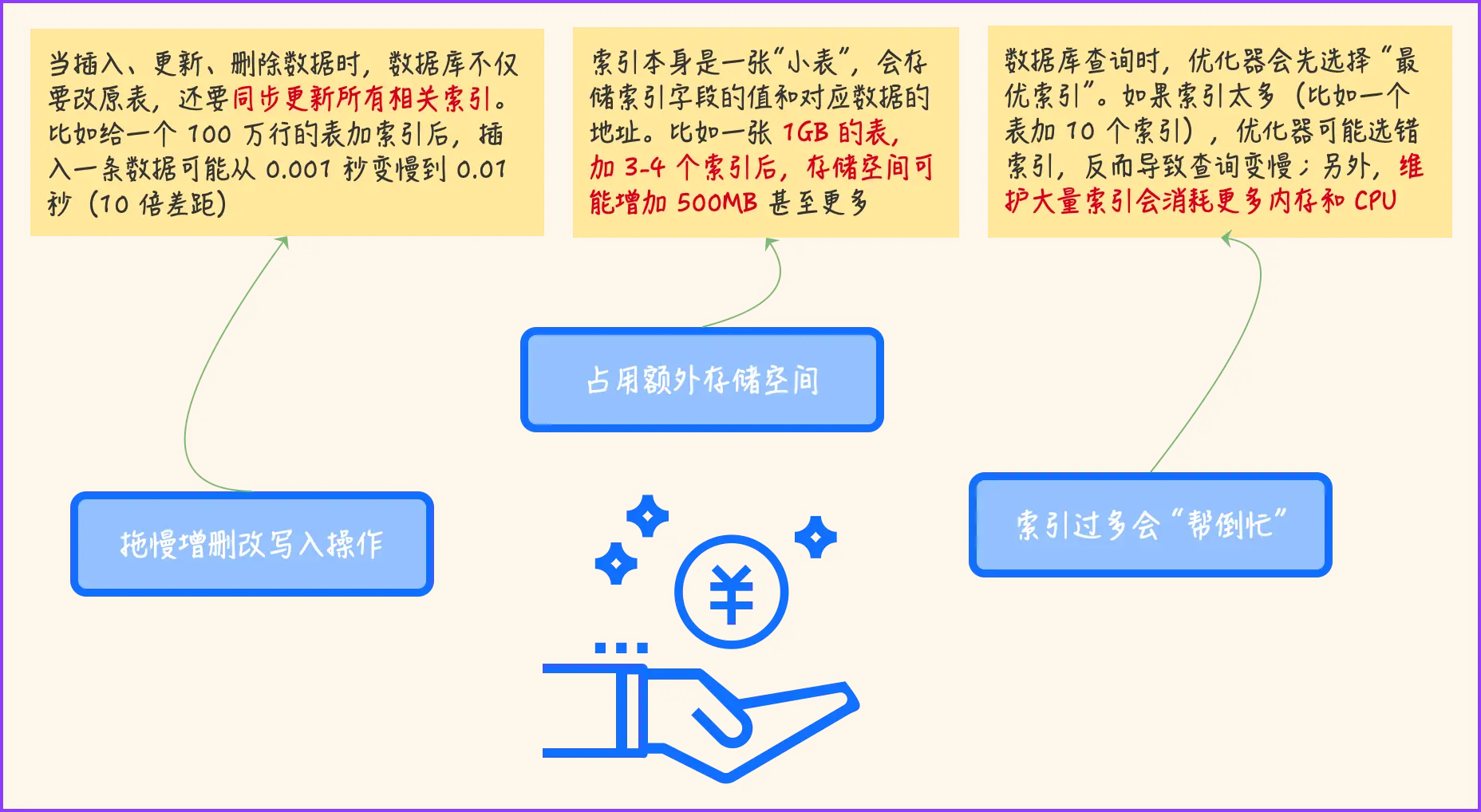 索引不是银弹,它的加速查询是有代价的!银弹是啥?科普一下这个出自前端的梗:「银弹」指的是一个能神奇地解决所有问题的方案或工具。