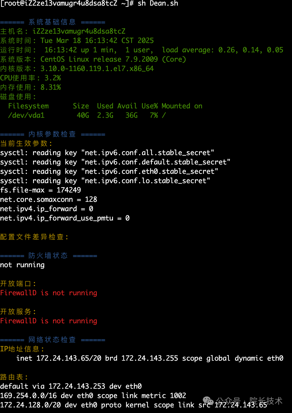36 echo -e "\n${BLUE}====== 内核参数检查 ======${RESET}" | tee -a $LOG_FILE