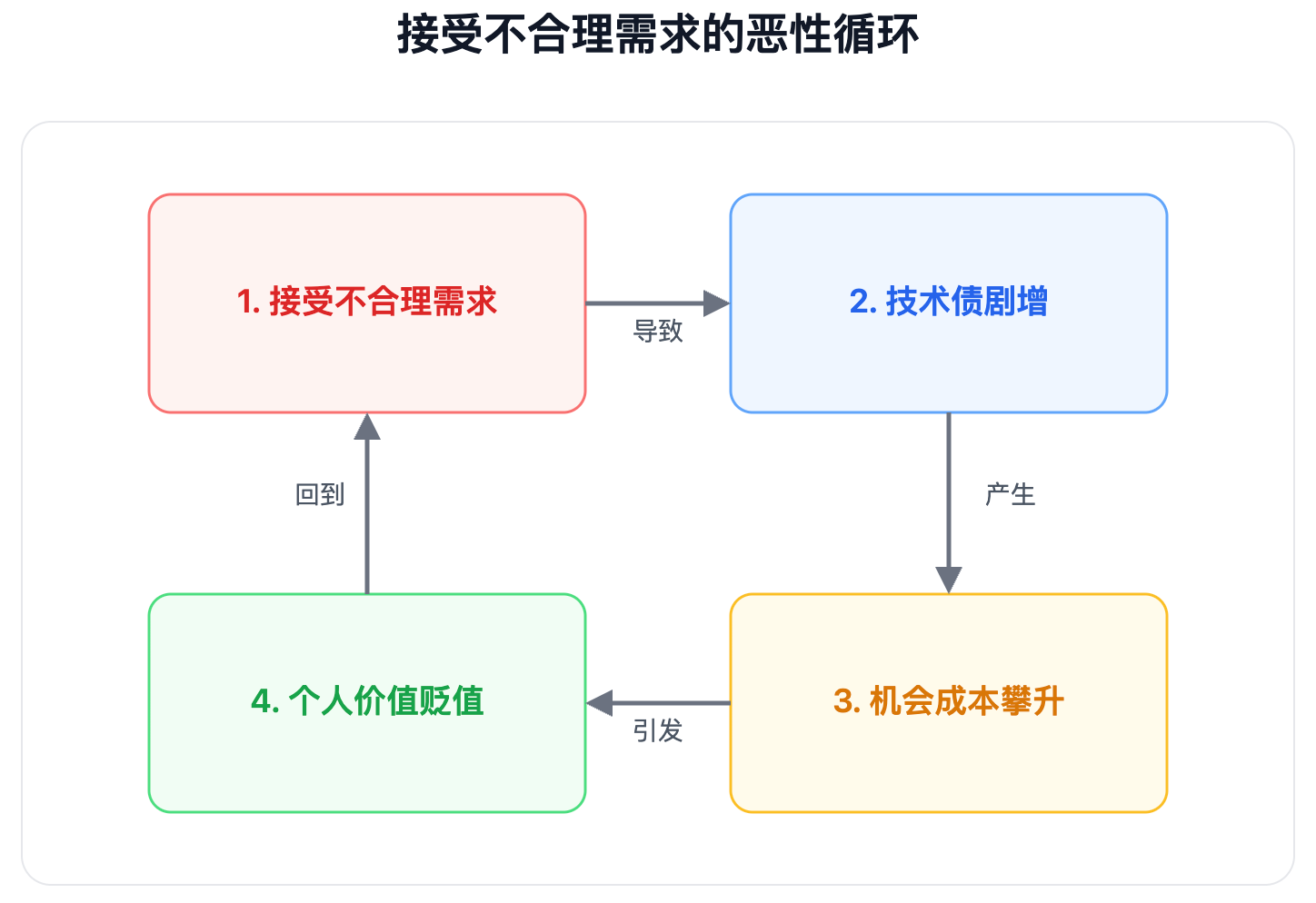需求来的时候,总是很紧急很重要而又不怎么合理:先这样,以后再改。接受不合理的需求,可能会得到一时的和谐与安宁。但付出的,却远比我们想象的,要多。