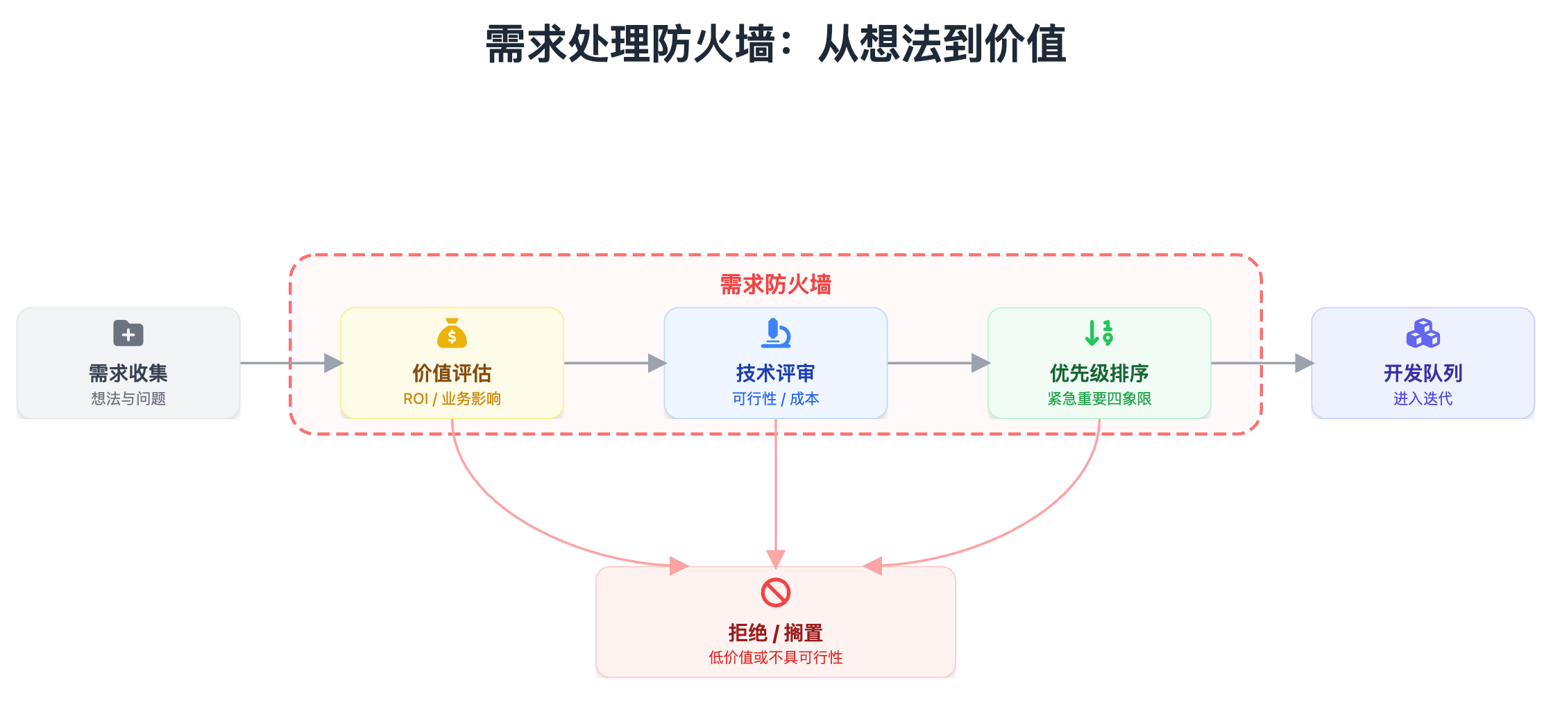 建立明确的需求评审、变更和发布流程。让每一个需求的提出者都清楚地知道,任何一个想法,从诞生到上线,都需要经过一系列严谨的评估环节。